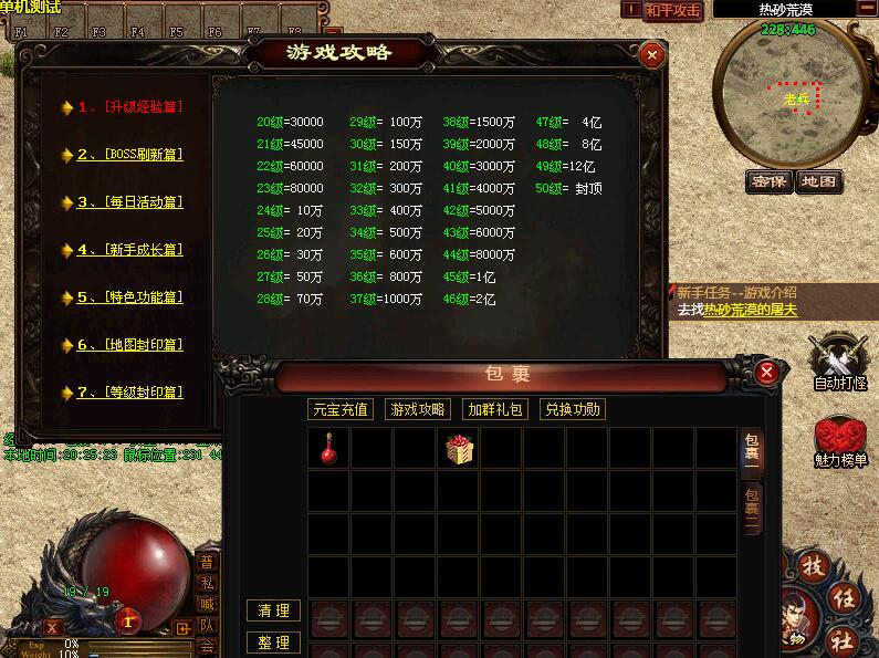 游戏设置:经验原始值,装备神武级,任务完整,复古怀旧传世首先这个版本,运行流畅!